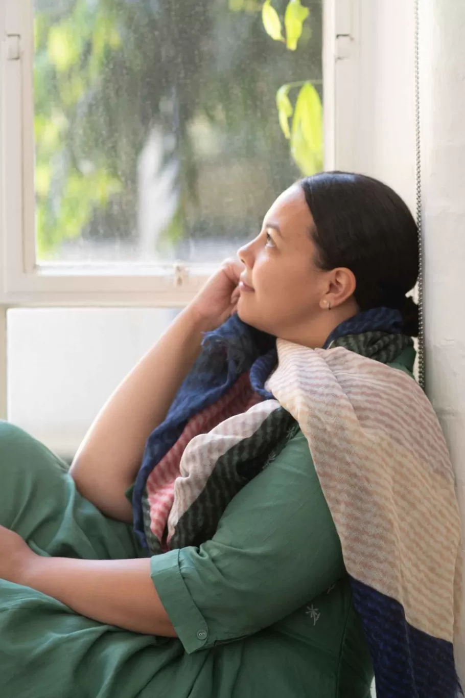 Sarah Wears The Scarf With Gianna Dress Evergreen