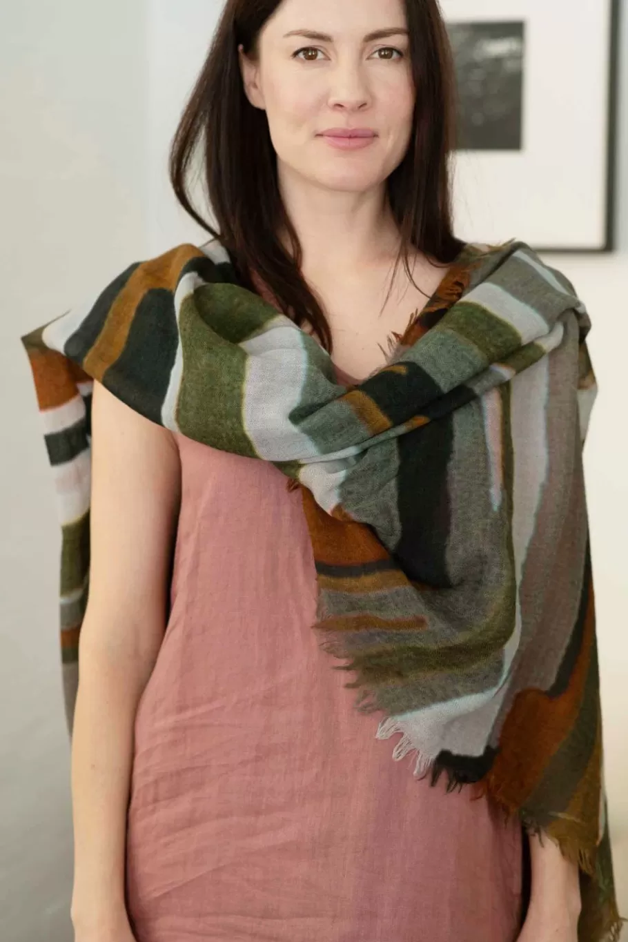 All The Colours Of Nature Deep In The Forest. This Fringed Woollen Scarf Is Light Weight Yet Warm For Those Chilly Days