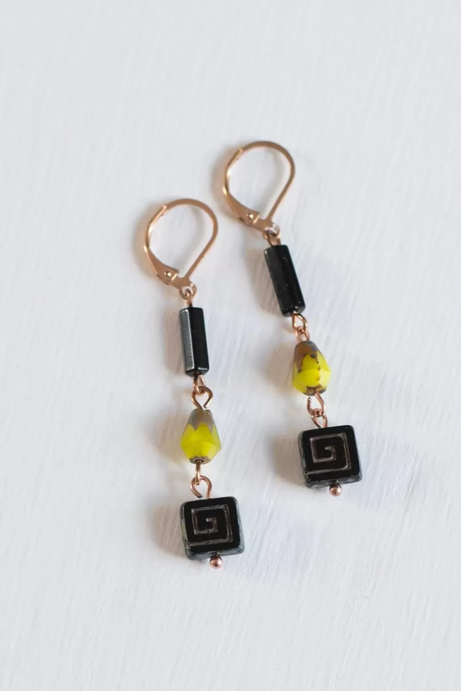 Earrings With A 4.5Cm Long Drop Of Czech Glass Beads.