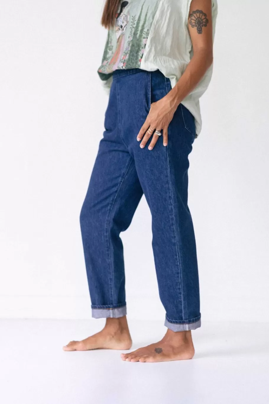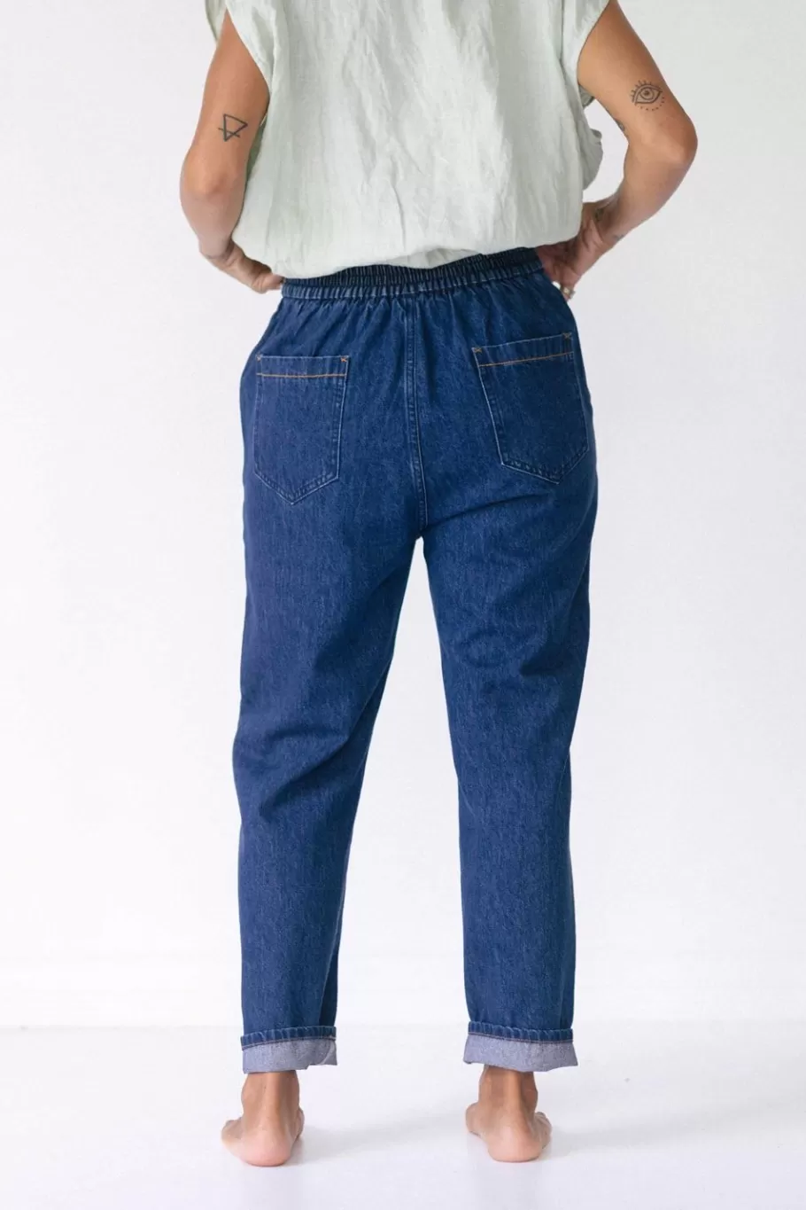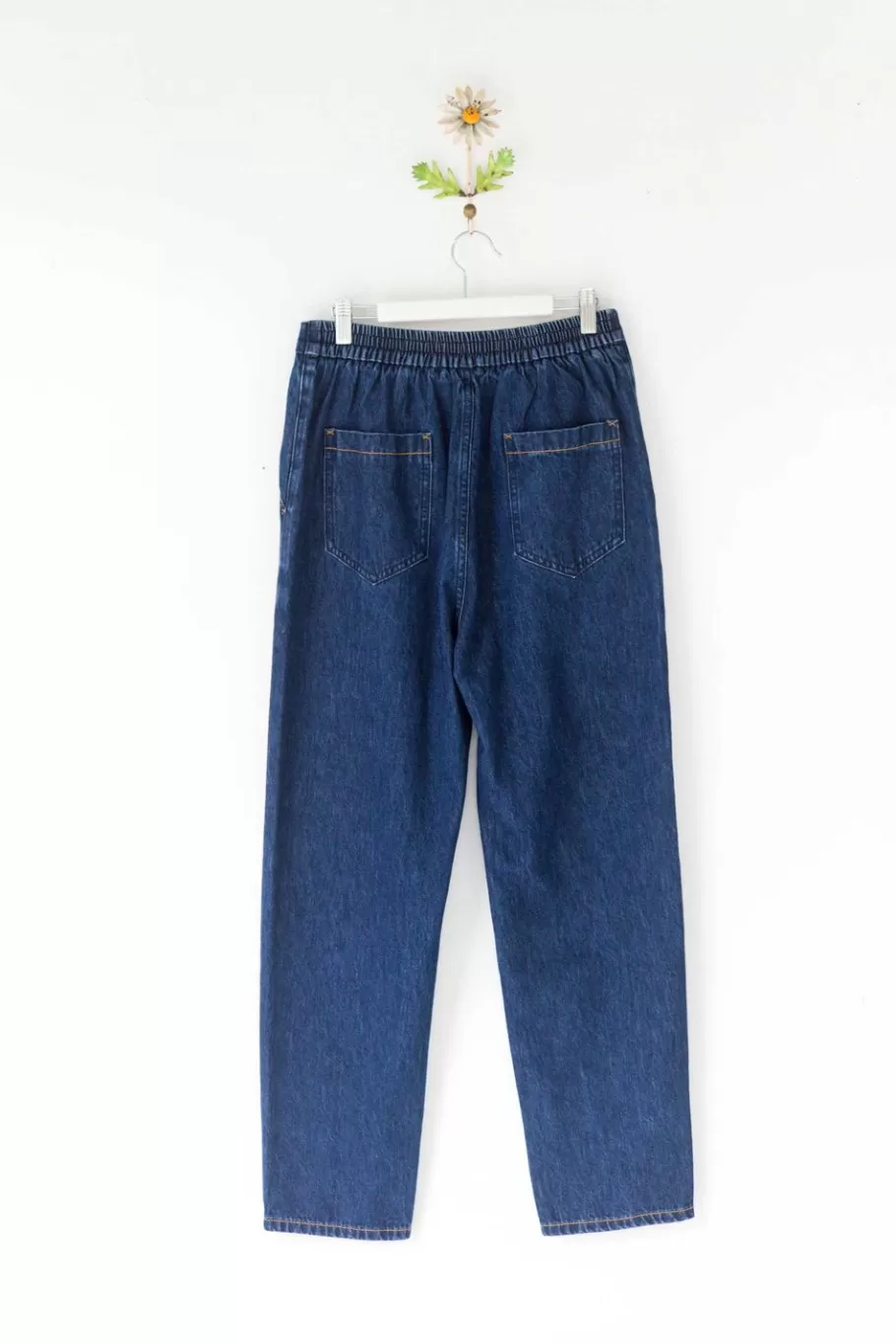 Slouchy Jean Style Denim Pant With Elastic At Back Waist.