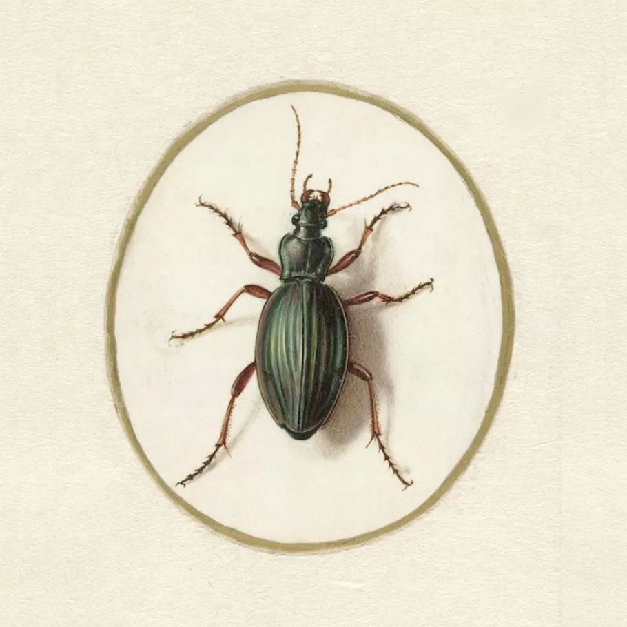 Cushion Cover Featuring The Golden Loupe Beetle, By Dutch Artist Jan Augustin Van Der Goes 1690 – 1700