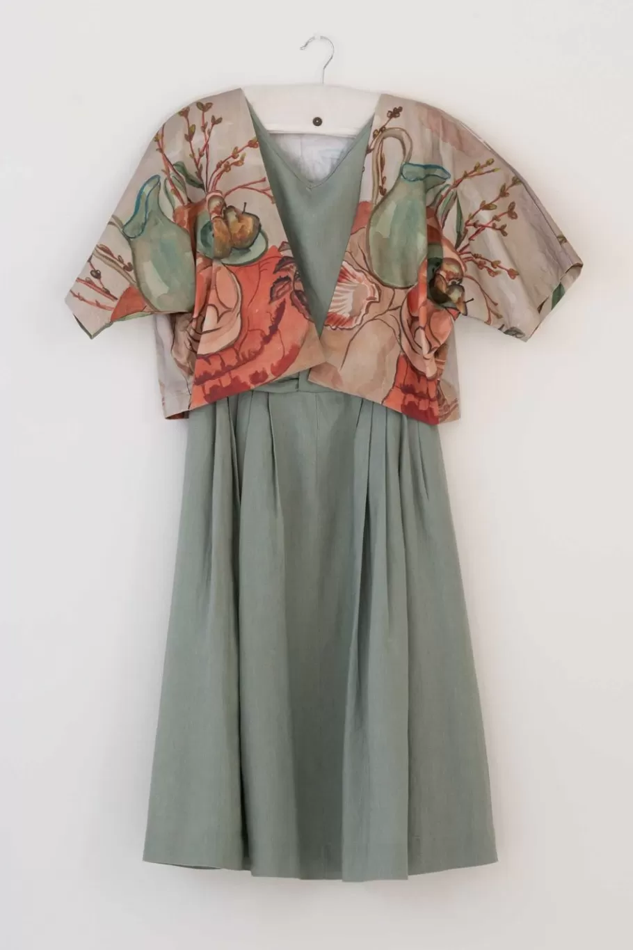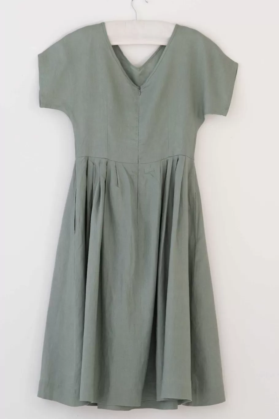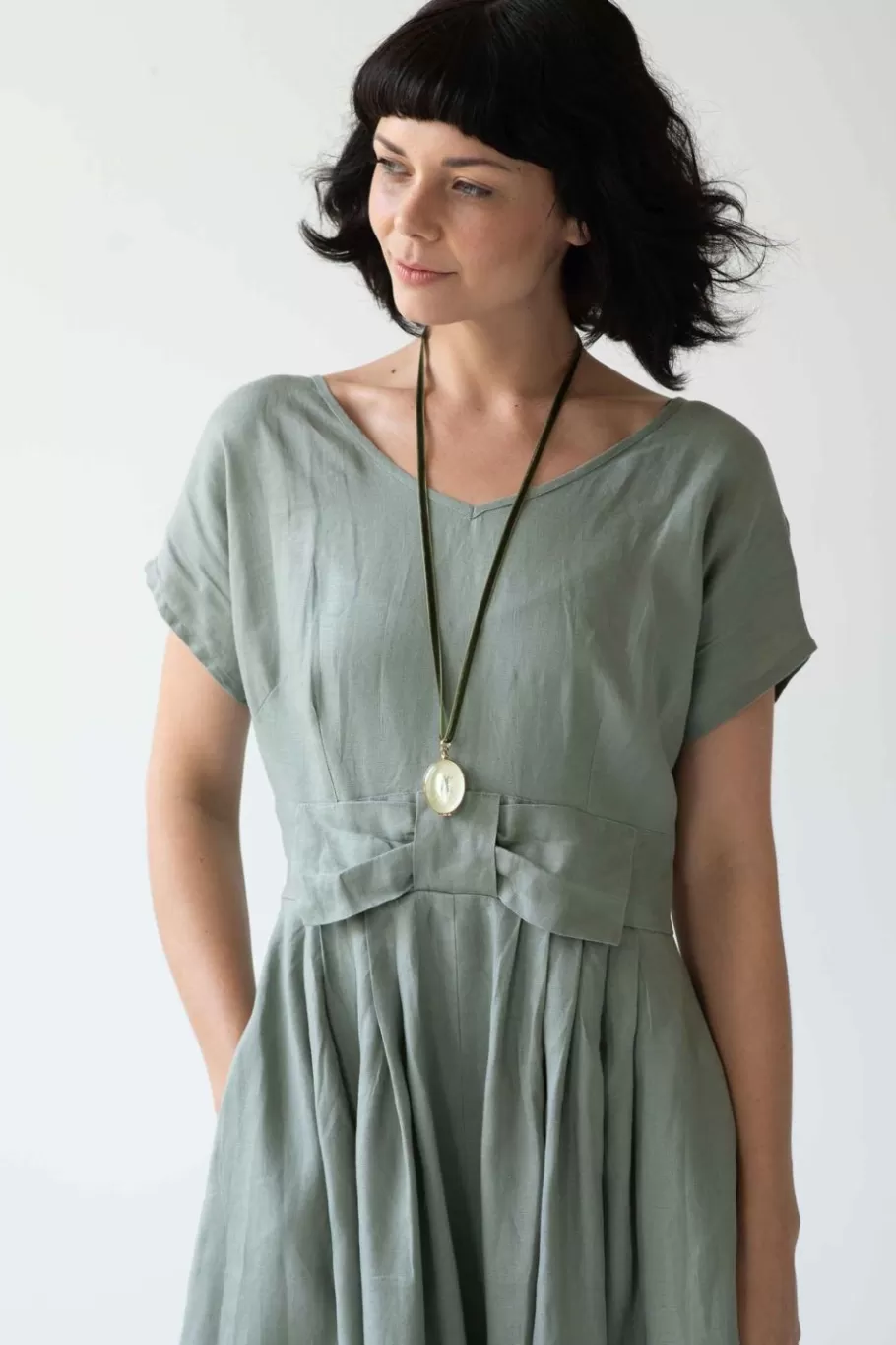 100% Washed French Linen In Slate, A Soft Green/Grey