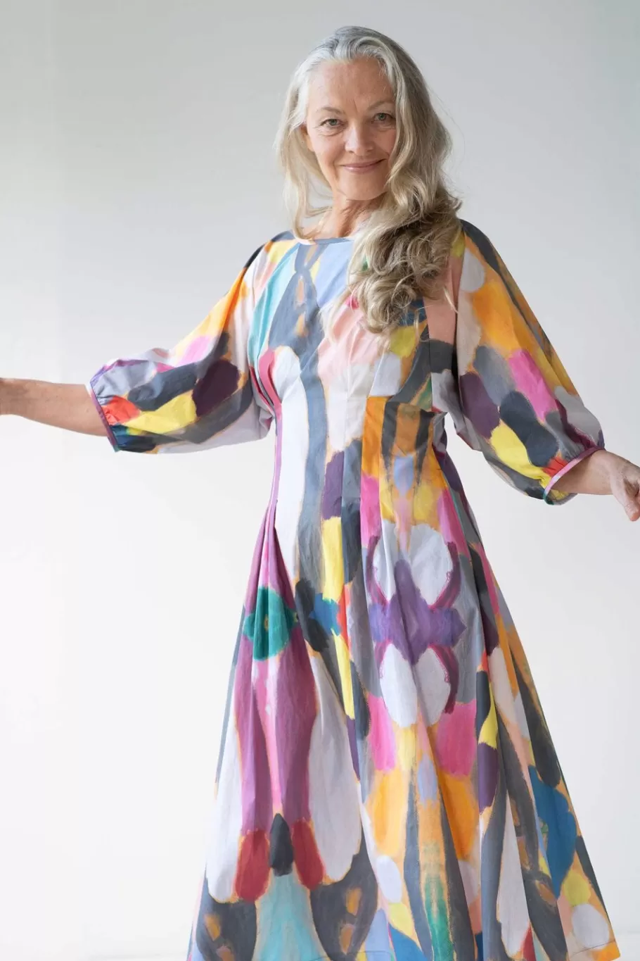 Gorgeous Dress With Front And Back Box Pleats That Taper Into The Waist And Flare Out In The Skirt And Bodice.