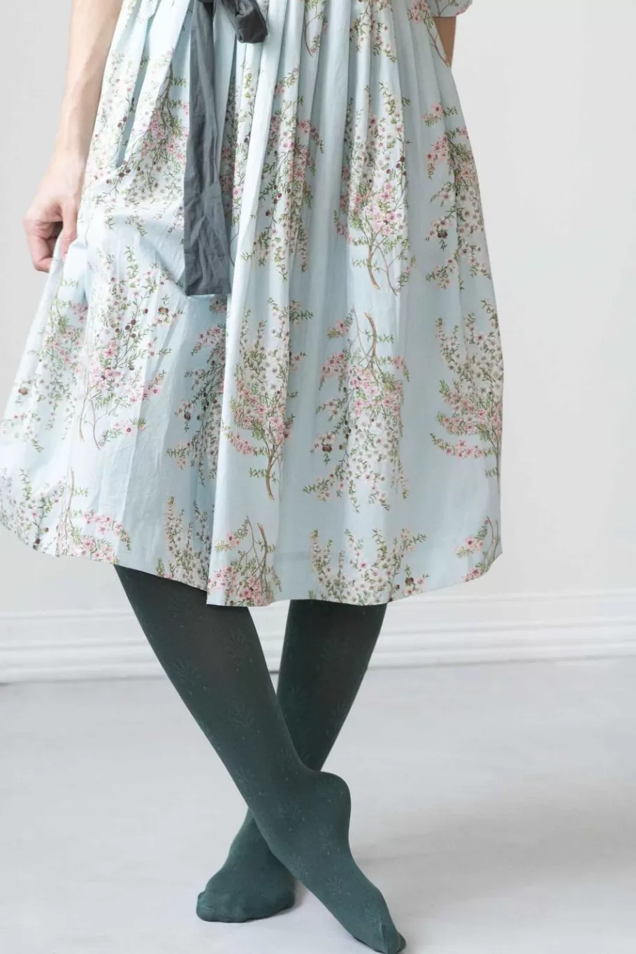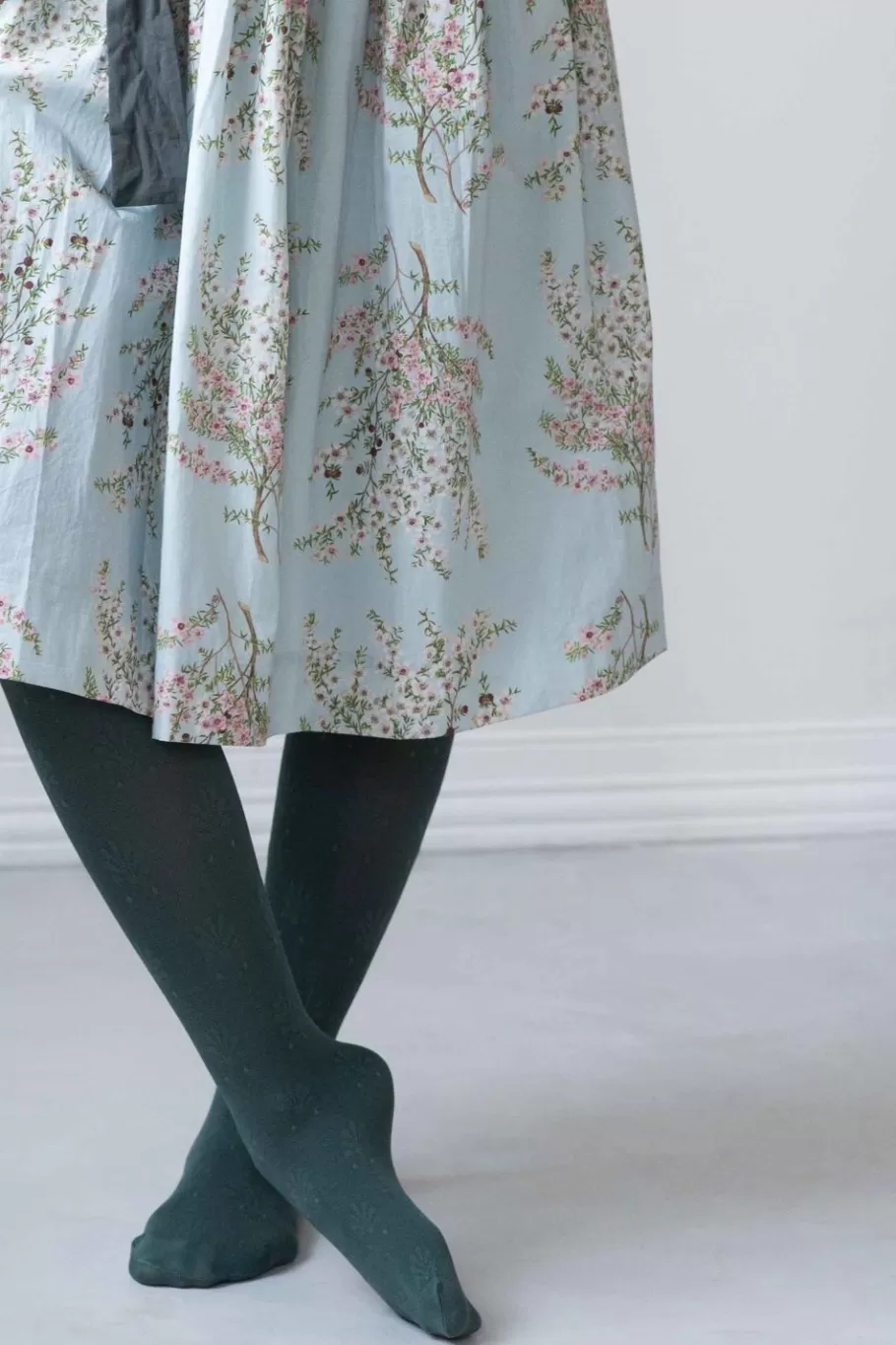 Luxurious And Breathable Organic Cotton Tights With A Fleur De Lys Design In A Deep Teal Blue/Green Colour