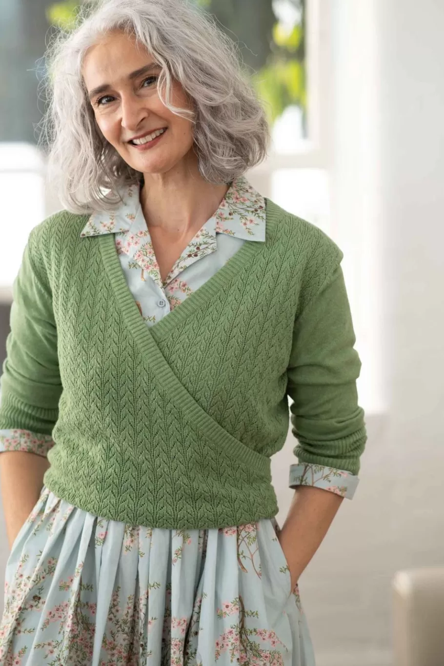 Georgina Is 171Cm Tall And Wears The Imogen Cardigan In Cottage Green As Well