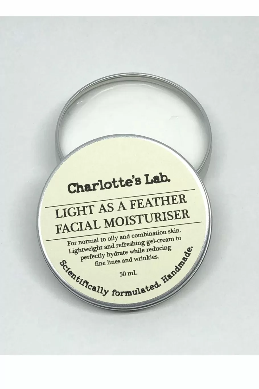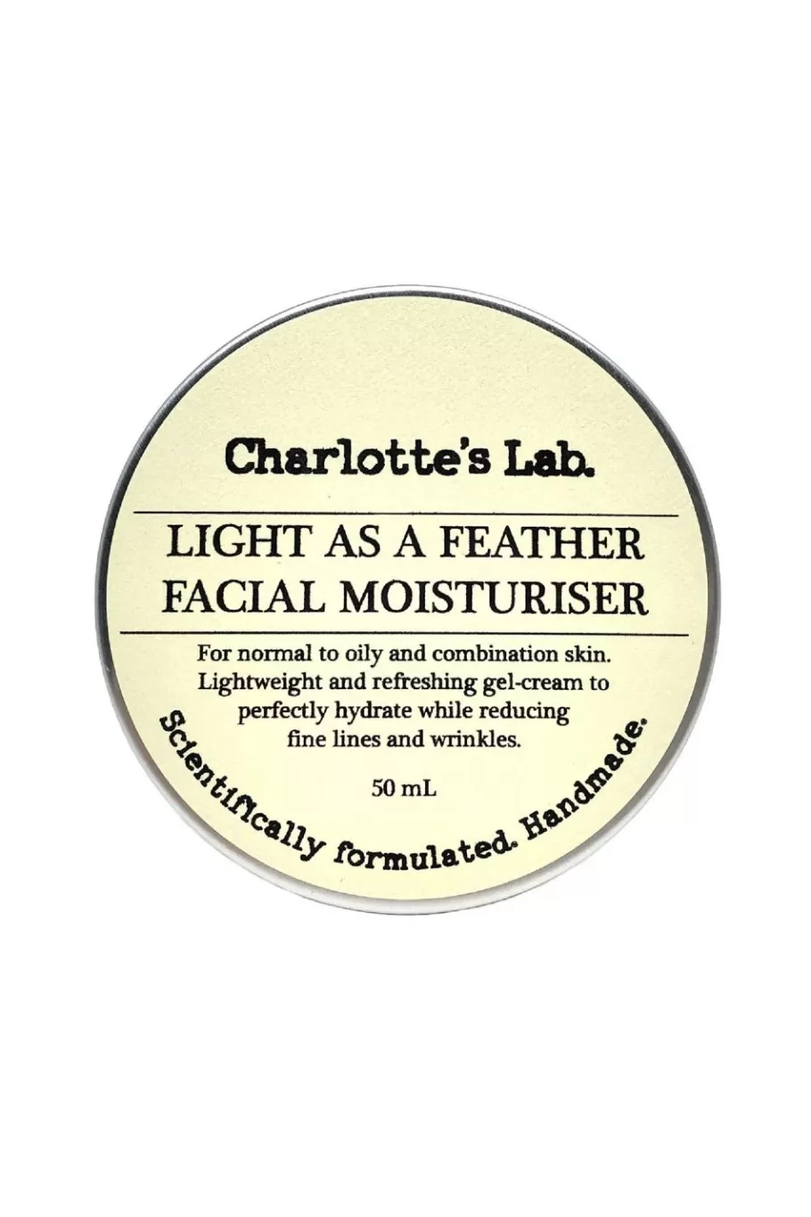 Light As A Feather Face Cream By Charlotte’S Lab Is For Normal To Oily And Combination Skin. Also Great For Sensitive Skin. A Lightweight And Hydrating Gel-Cream Full Of Natural Goodness. It?S A Refreshing Surge Of Moisture For The Dry Bits Without Overloading The Oily Bits. Balance Skin Tone, Refine Texture, Improve Elasticity, Reduce Fine Lines And Wrinkles And Improve Moisture Retention. This Moisturiser Is Unscented And Suitable For Sensitive Skin. This Face Cream Comes In A 50Ml Aluminium Tin