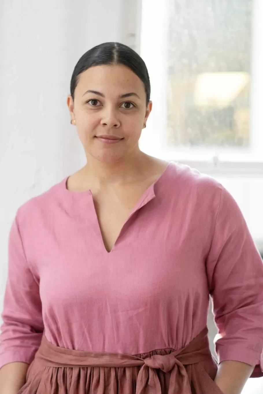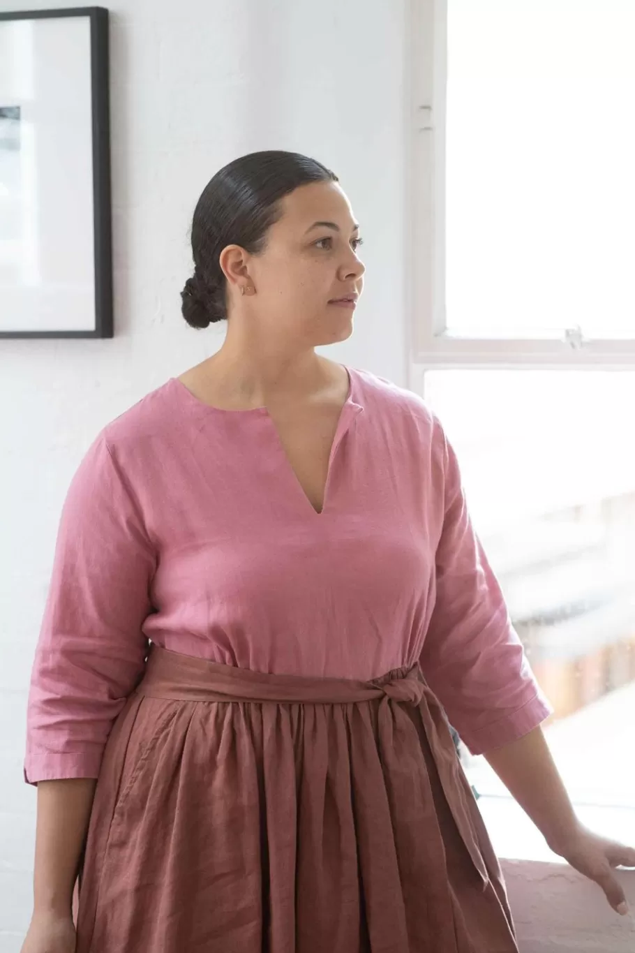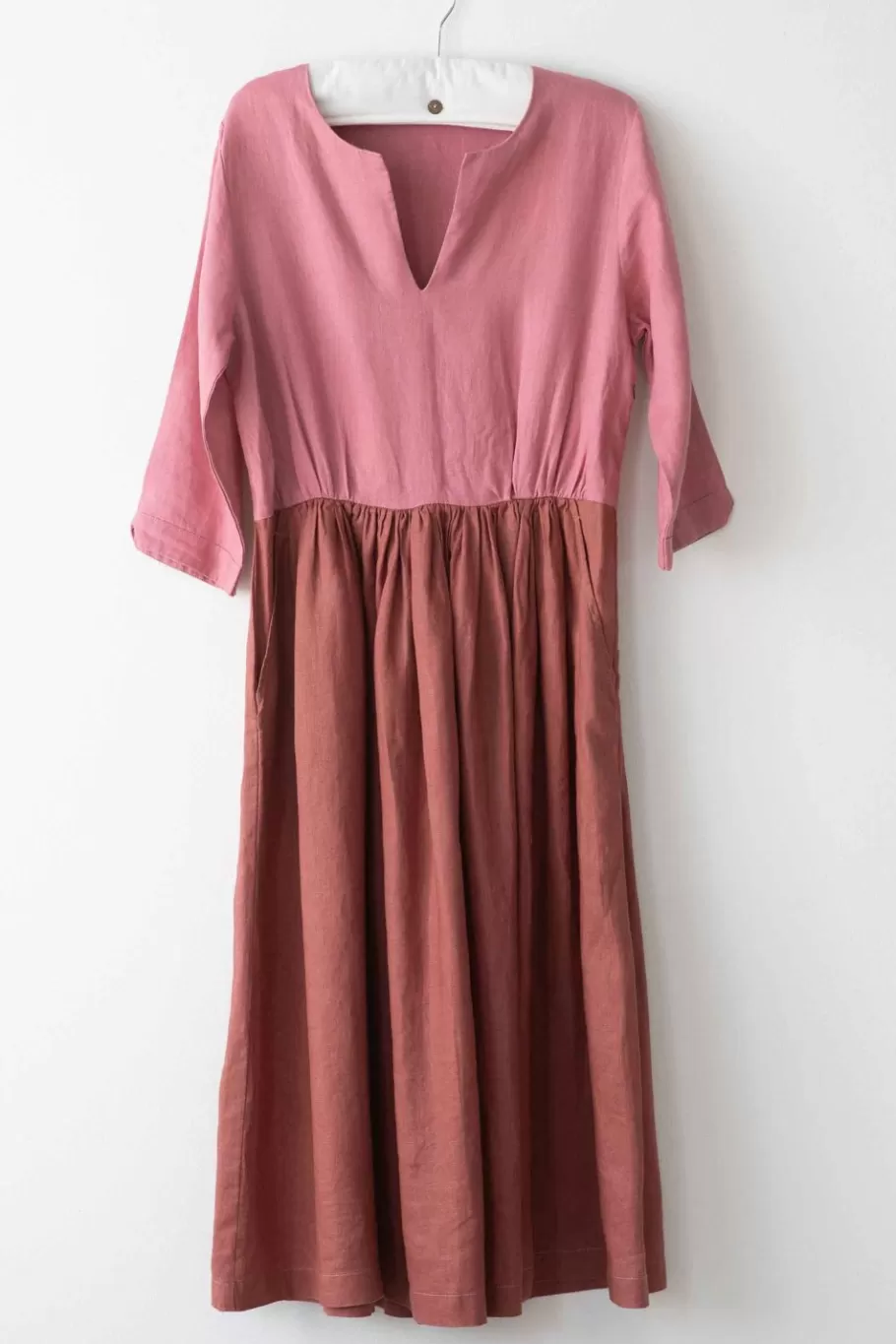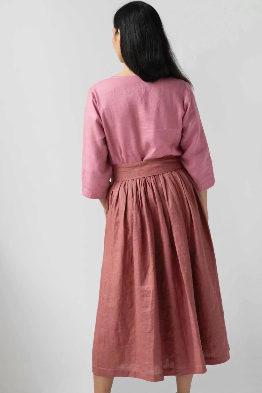 Michaela Is Our New Linen Dress With Bodice And Sleeves In Rose &Amp; Skirt And Belt In Copper.
