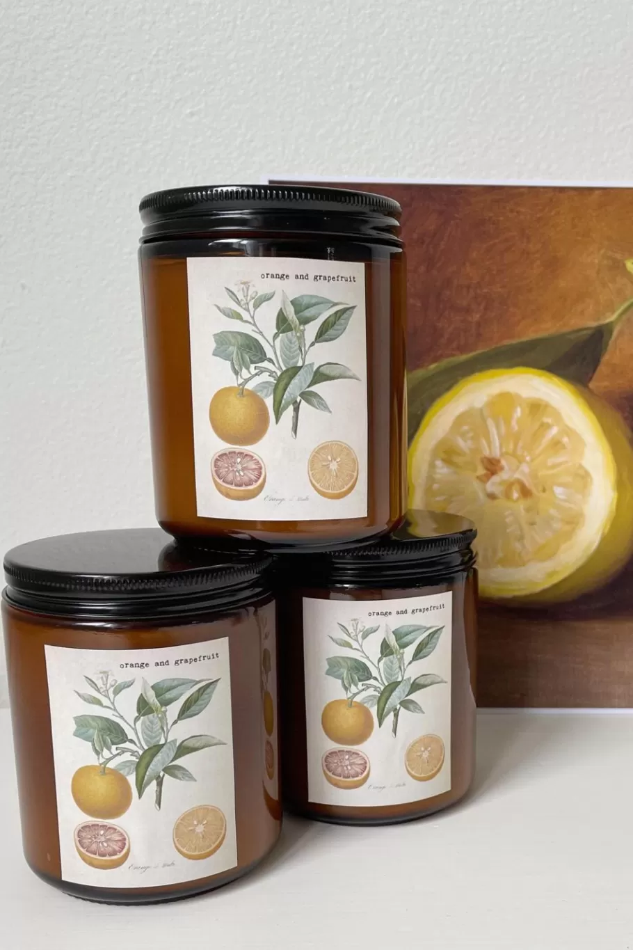 New Soy Wax Candles In Reusable Amber Glass Jars With Black Metal Lids.Generously Scented With Orange And Grapefruit Ess…