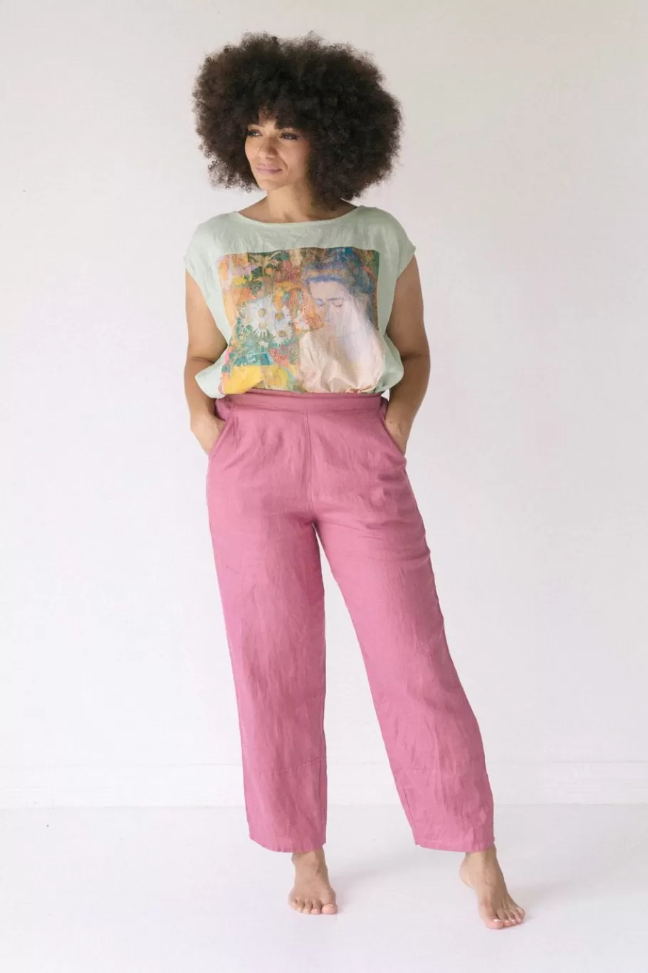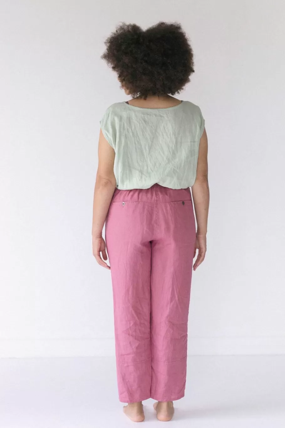 Relaxed Fit Loose Leg Pants Tapering Slightly At Hem.