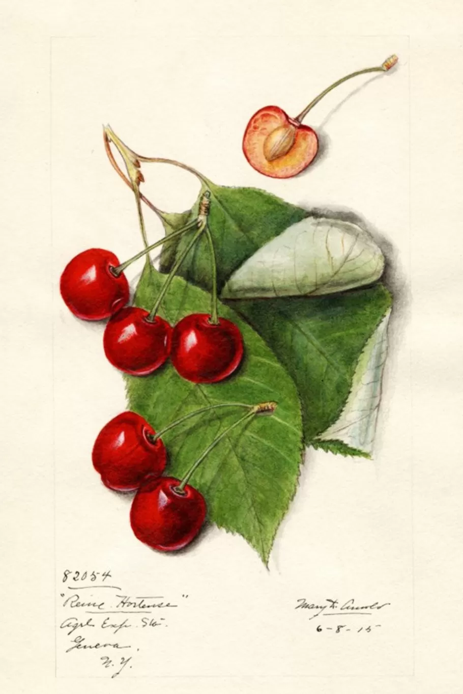 Prunus Avium Reine Hortense Botanic Painting By Mary Daisy Arnold