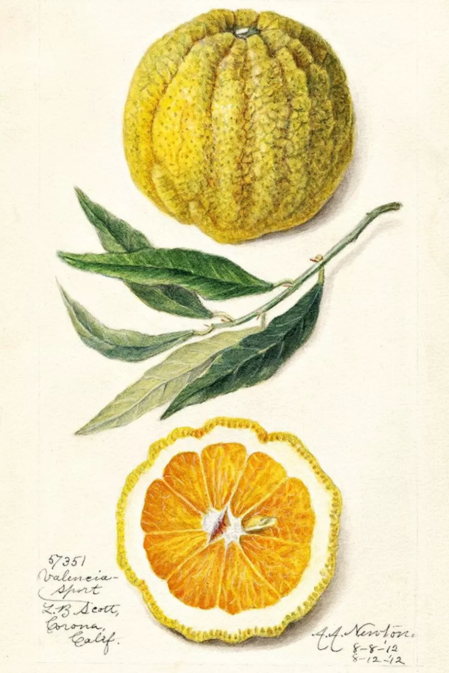 Citrus Sinensis Valencia Botanic Painting By Amanda Almira Newton