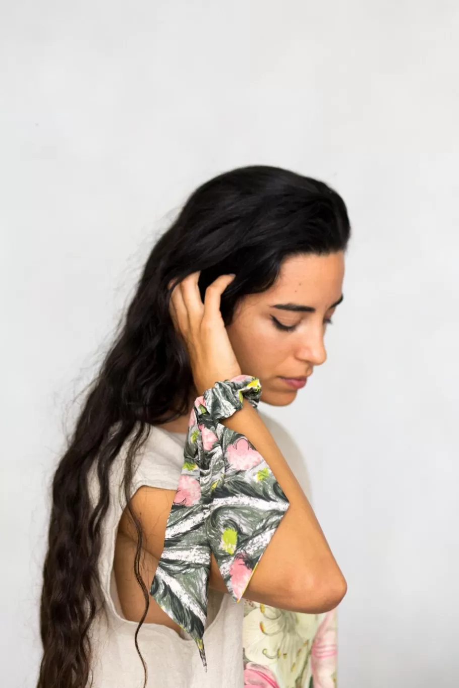 These Scrunchies Can Be Worn With Or Without A Detachable Scarf.100% Cotton In Rosalie Print