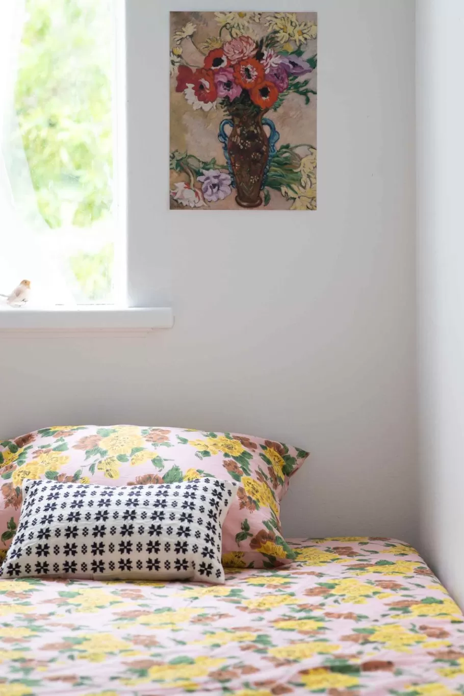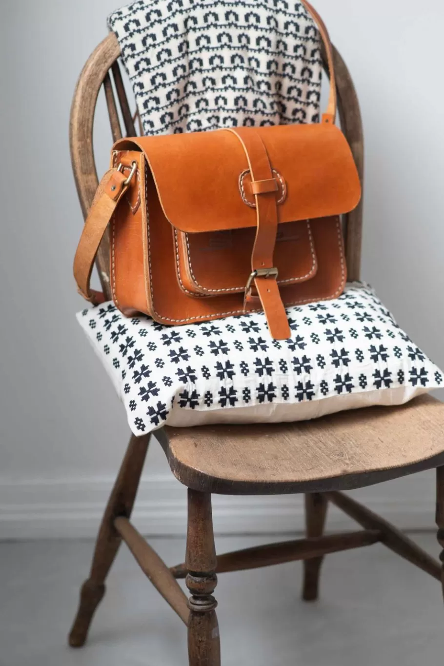 This Rectangular Cushion Is The Perfect Size For Sitting Up In Bed, Reading A Book Or Enjoying A Cup Of Tea Features All Over Embroidery Of Black On Unbleached Natural Cotton.