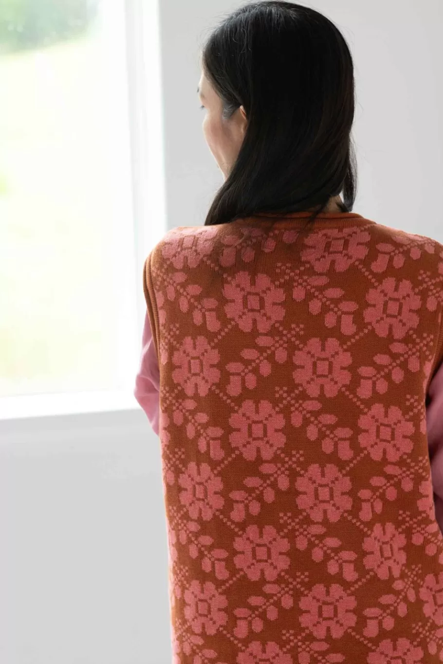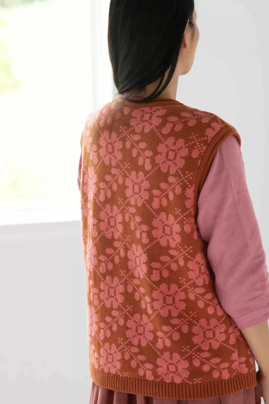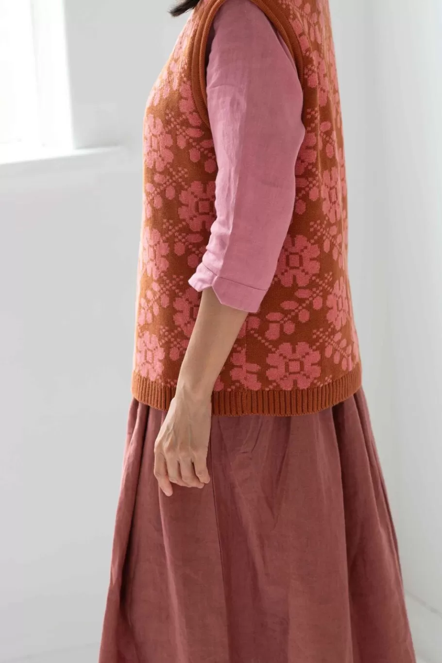 Our New Valerie Vest Uses A Similar Neckline As Our Popular Agnes Jumper. It Features Wide Shoulders And Deep Armholes, With Contrast Rolled Hems At The Neck And Sleeve Opening The Hem Has A Ribbed Band.